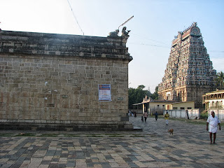 There is another recent legend associated with this temple. The sacred Tamil works of the Nayanmaars had been missing for several years, and it was during the period of Raja Raja Chola (the builder of the Grand temple at Tanjavur) that formal research was initiated to trace these fine works of devotional literature. These works of the Saivite Saints - rich in musical content were recovered in a dilapidated state in one of the chambers in this vast temple, after the monarch brought images of the Saint trinity in procession to the temple.